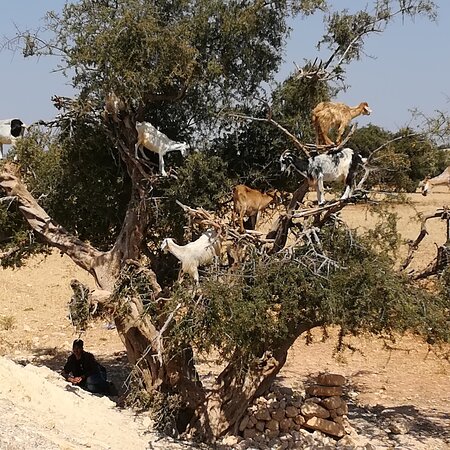 argán fákat és a rajtuk ácsorgó kecskéket.