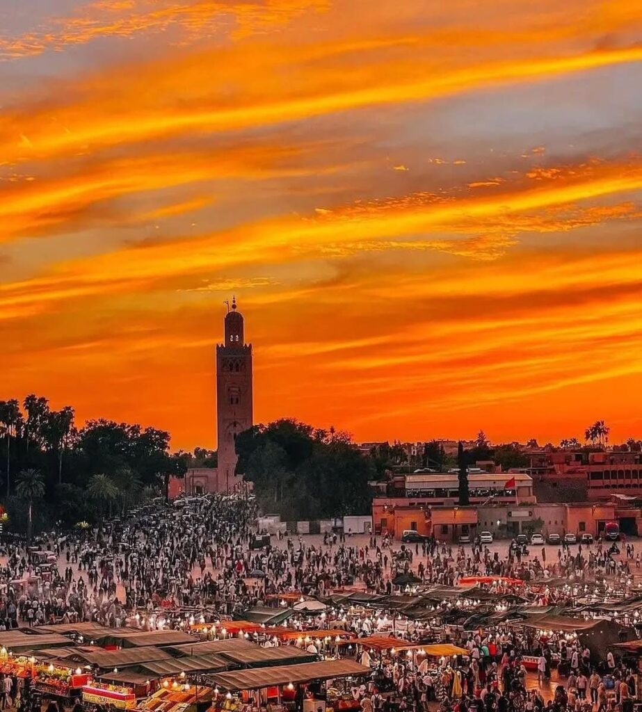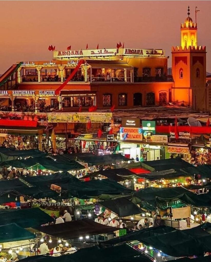 Jemaa el-Fna Square: Discover the lively heart of the city with a walk through Jemaa el-Fna, where you’ll encounter street performers, food stalls, and vibrant market activity.