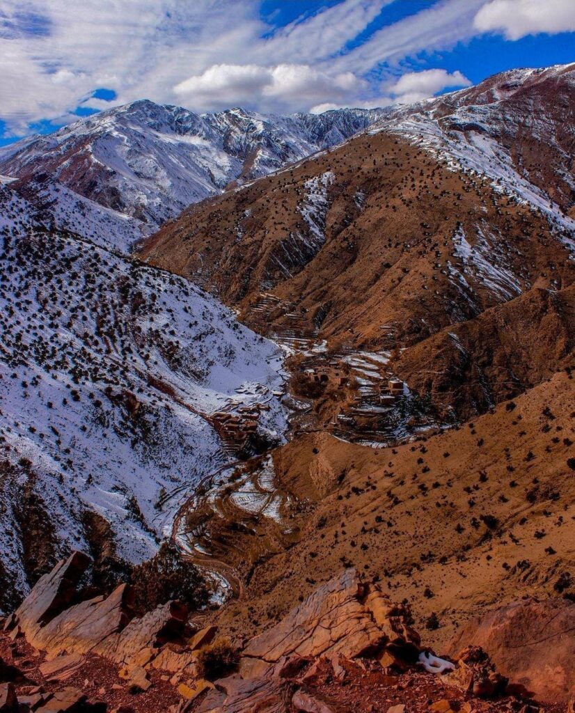 Transfer to the Happy Valley: Drive from Marrakech through scenic mountain roads to Ait Bouguemez, also known as the “Happy Valley.”